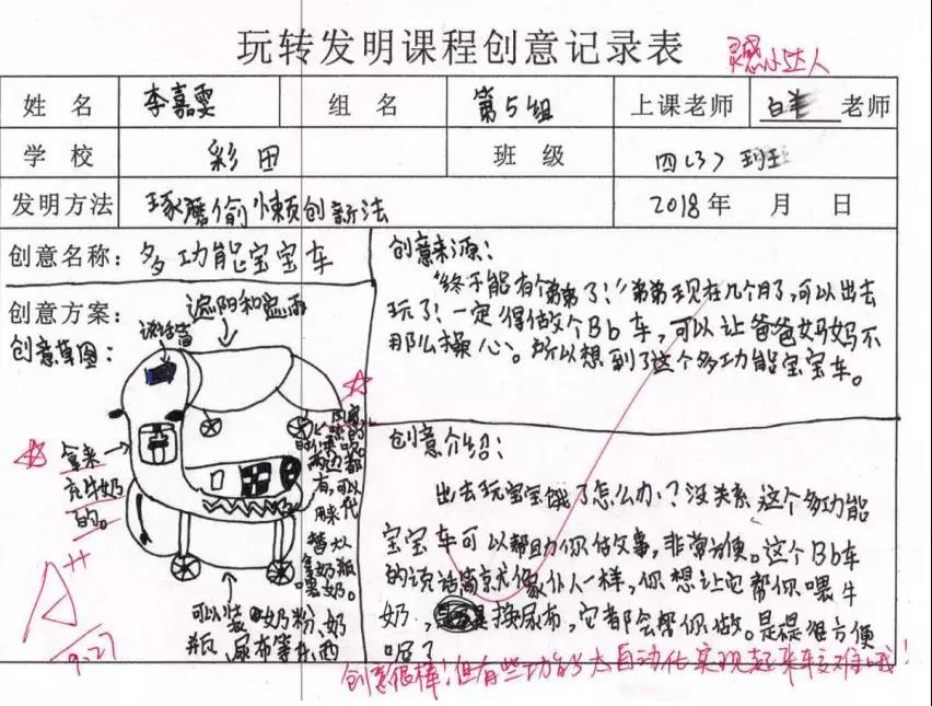 生活中很多發明故事、生活發明案例、新穎的創意視頻,經過老師的生動展示和引導啟發,我們的學生們能寫出很多新穎又實用的創意,一起來看看他們腦洞吧~