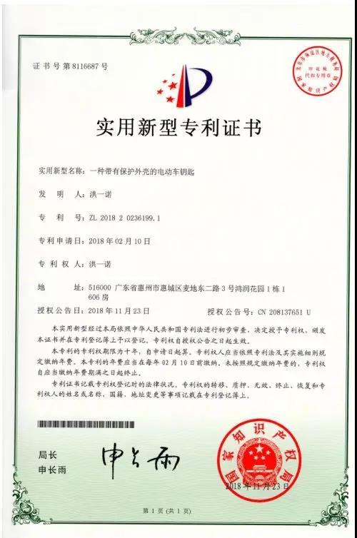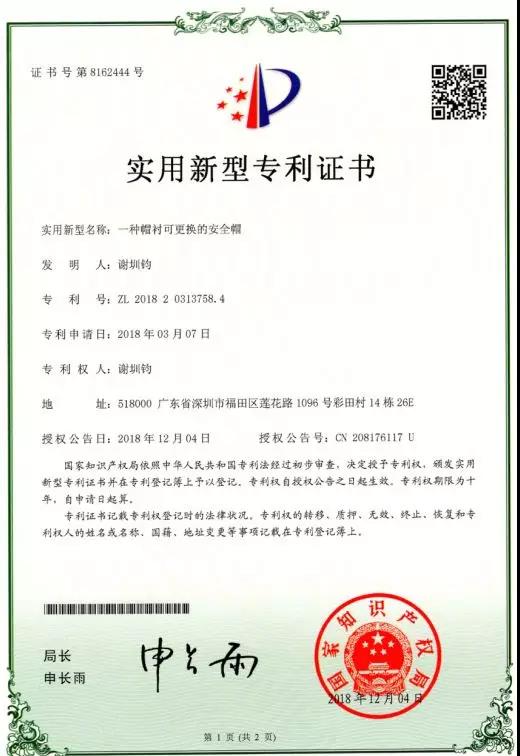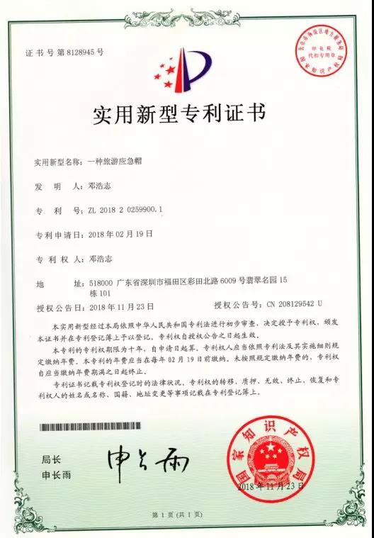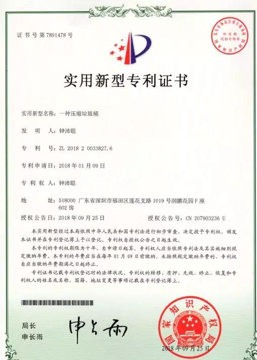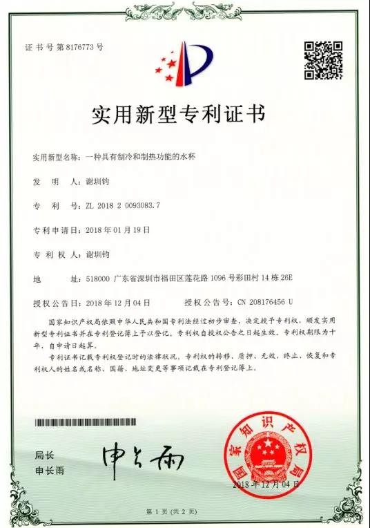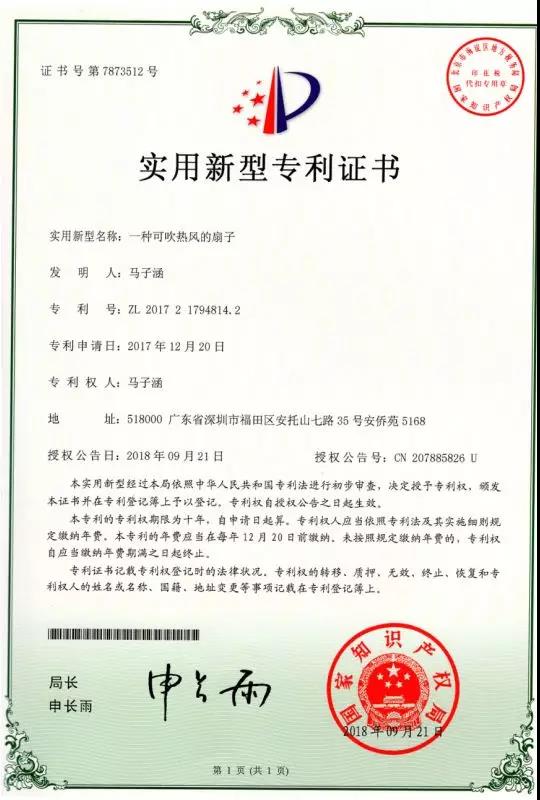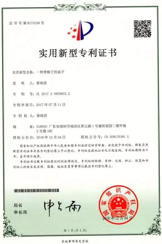 2018年頒發的專利證書◆◆