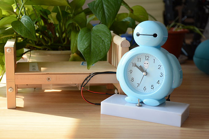 這個作品是一個翻滾鬧鐘床,旨在為起床困難戶提供一個終結賴床毛病的利器。這個作品是通過一個木制的模型床來展示實際效果,床下裝有凸輪電機,床面是可以活動的,電機與鬧鐘相連接,當到達鬧鐘的設定時間時,電機開始工作,在凸輪的轉動下,床面會上下起伏,讓人清醒過來且沒法再睡,從而終結賴床行為。