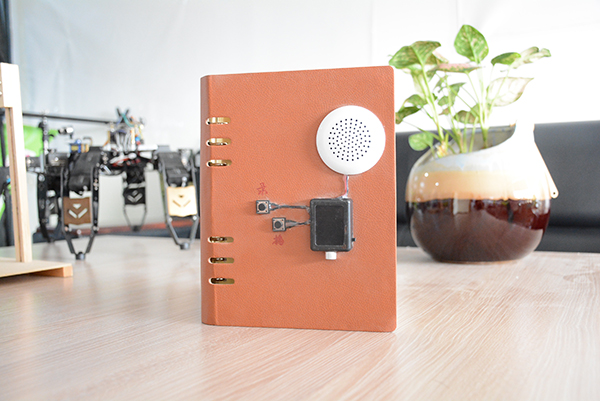 寫(xiě)日記的時(shí)候,有些事情寫(xiě)不明白,或是現(xiàn)在不想寫(xiě)想晚點(diǎn)寫(xiě),我就想用說(shuō)的方式先把靈感記錄下來(lái),然后在需要的時(shí)候再放出來(lái)。我在筆記本封皮上安裝了一個(gè)錄音模塊,一個(gè)鍵是錄,一個(gè)鍵是播放,這樣就可以語(yǔ)音記錄和文字記錄一起用了,想用哪個(gè)用哪個(gè),非常方便。