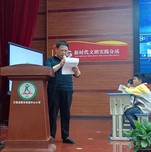康樂街道中心小學黨支部書記梁文斌致歡迎辭
