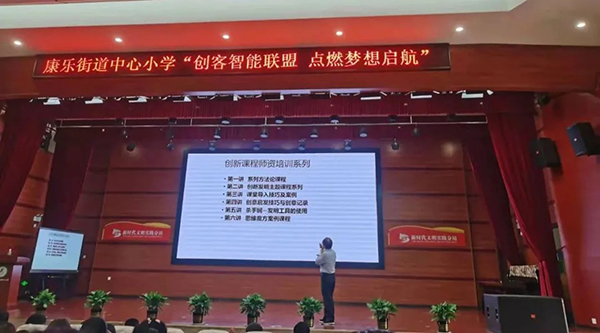 聶教授還為康小的科學老師們進行了科學課程的教育方法培訓。他在講座中指出:創新教育課程是以“啟迪發明智慧,開發創新潛能,交付發明成果,成就創新人才”為目標,以培養學生掌握創新的方法和技巧、具備基本創新應用能力為導向,對學生進行創新意識培養的一門課程。課程密切聯系生活,結合各學科基本知識,呈現不同思維方法的相互滲透和結合,注重知識與能力的雙重培養,逐步培養學生的創新精神,優化學生綜合素質,為學生適應未來社會做好準備。
