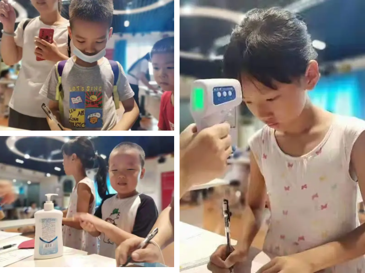活動保障孩子們的健康和人身安全,在簽到的同時,工作人員也做好了測量體溫和消毒洗手等衛(wèi)生準備工作。