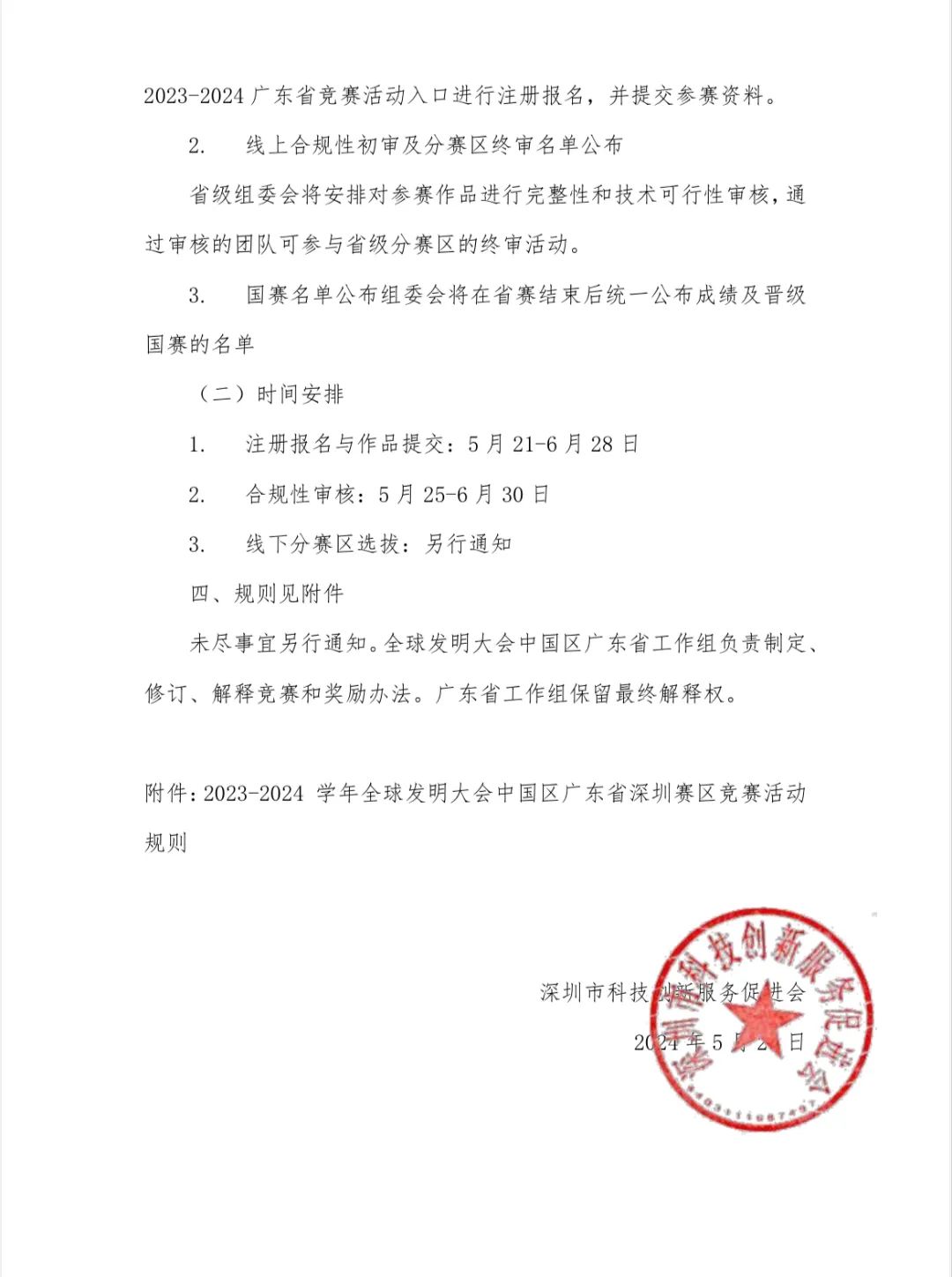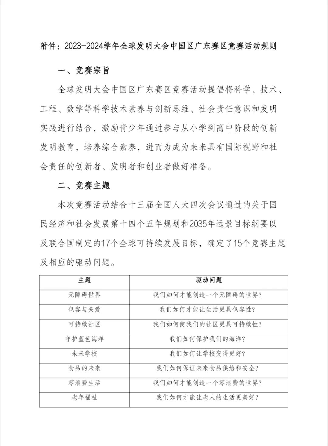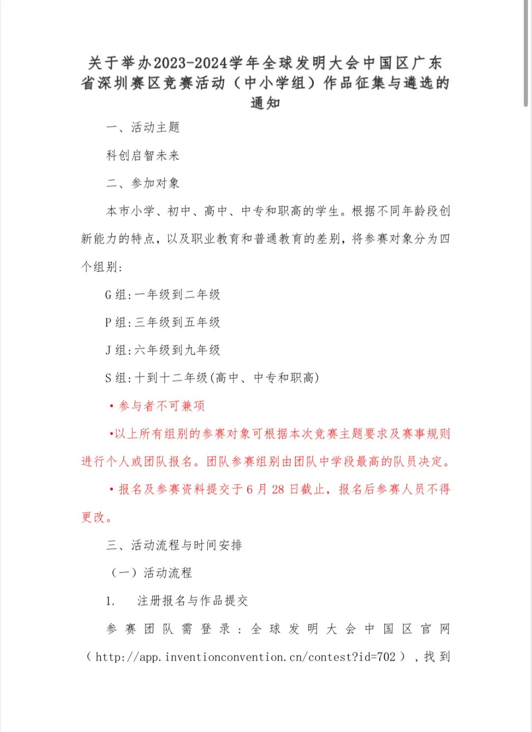 【賽事通知】關于舉辦2023-2024學年全球發明大會中國區廣東深圳賽區競賽活動(中小學組)作品征集與遴選的通知
