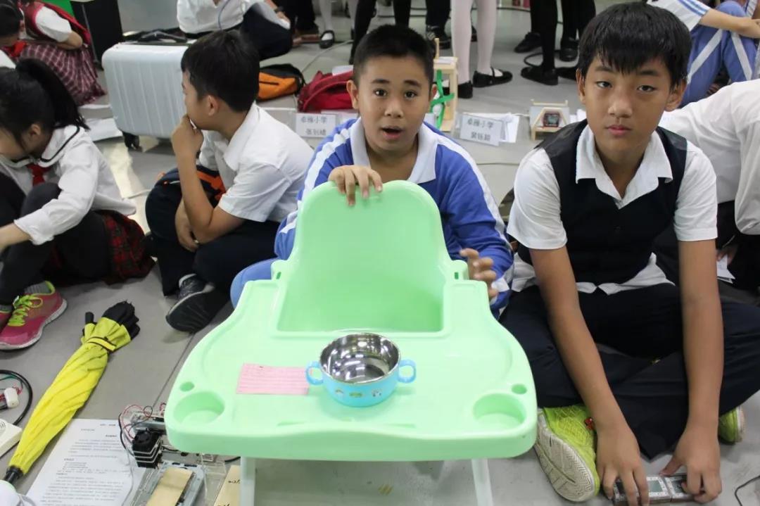 這是六年級的張稷同學發明的“不翻碗的嬰兒車”!怎么不翻碗呢?我們來聽聽張稷同學怎么說吧~↓↓↓