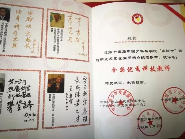 我校周殿勤、程程老師被評為“全國優秀科技教師”。↓↓↓
