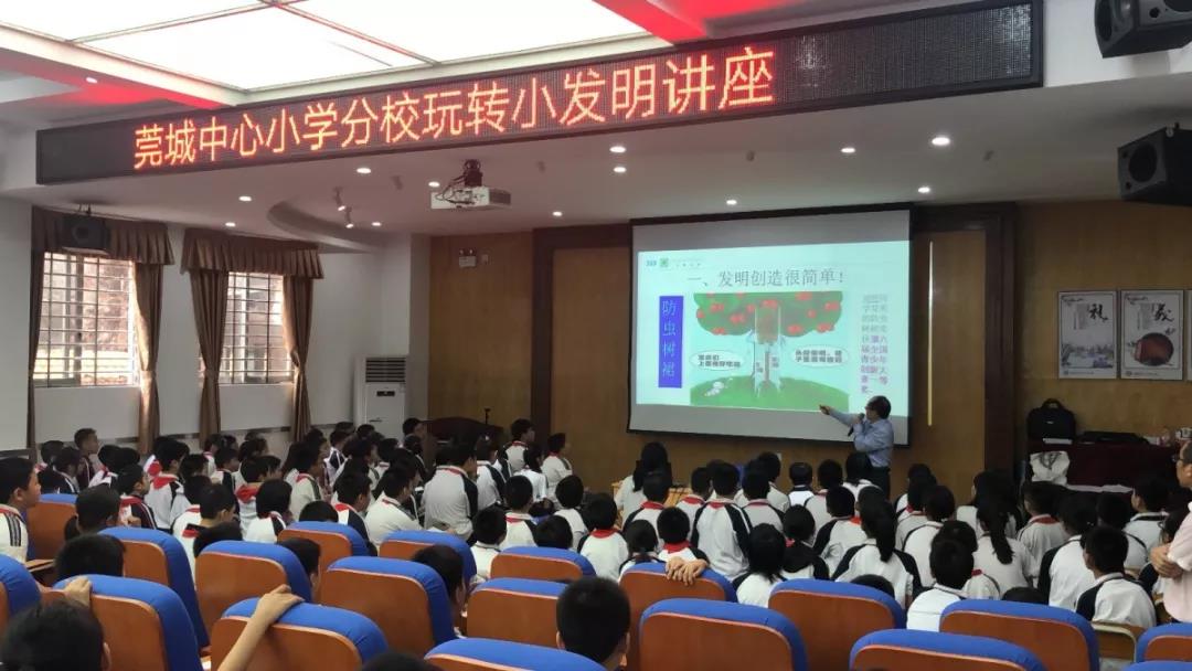 講座上,聶老師根據莞城中心小學全體同學的實際情況出發,結合《玩轉發明》實物載體創新發明法的優勢,制定了有效的教學方案。從“發明創造非常簡單”“發明創造來源于生活”、“發明是知識創新運用”、“怎樣進行發明創造?”四個方面向學生們介紹創造發明的內涵和本質。