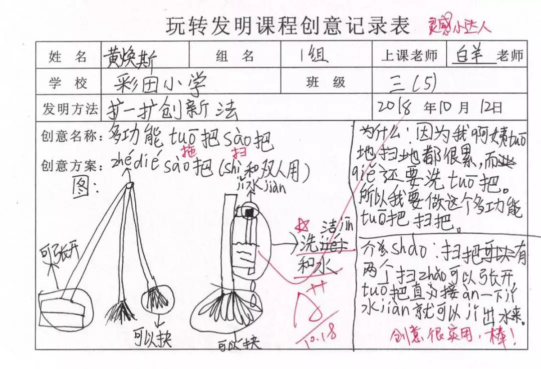 本學期,彩田學校三年級的同學們首次接觸了科創課——玩轉發明,從一開始不了解這個課程到現在能完整地寫出自己的創新發明,同學們進步很大,并且慢慢培養了創新思維,很棒哦,繼續加油~