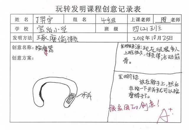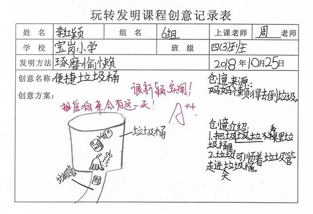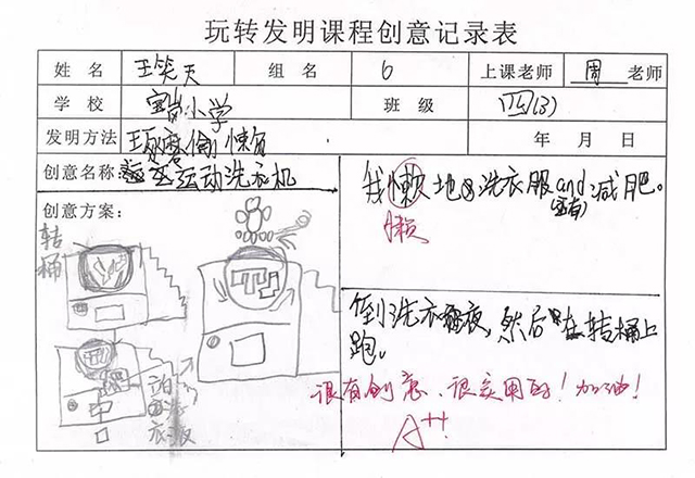 今天學習的發明方法,孩子們很感興趣。各個都在課上積極踴躍的分享自己的創意,其中洪梓聰同學的可以減肥的自行車洗衣機、可以自動刷牙的牙套讓人印象深刻。