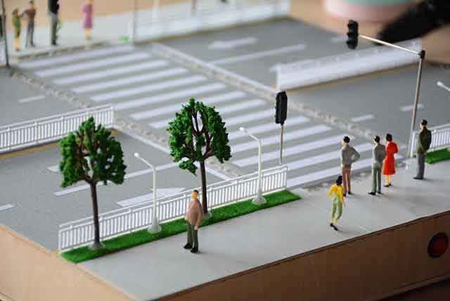 這個作品是一個霧霾天安全警示紅綠燈,靈感來源是現在中國很多城市霧霾很嚴重,有時甚至嚴重到影響人們看清紅綠燈,所有就需要有一種能夠在霧霾天也能非常醒目的紅綠燈。這個作品是通過一個模型來演示實際效果的,紅綠燈被安裝在馬路上,因為路面離人眼比對面的紅綠燈離人眼要近得多,所以無論是行人還是司機,都能夠清楚地看到紅綠燈的情況。此外,地面的紅綠燈也能夠提醒一些“低頭族”,防止因過度沉迷電子設備而發生事故。